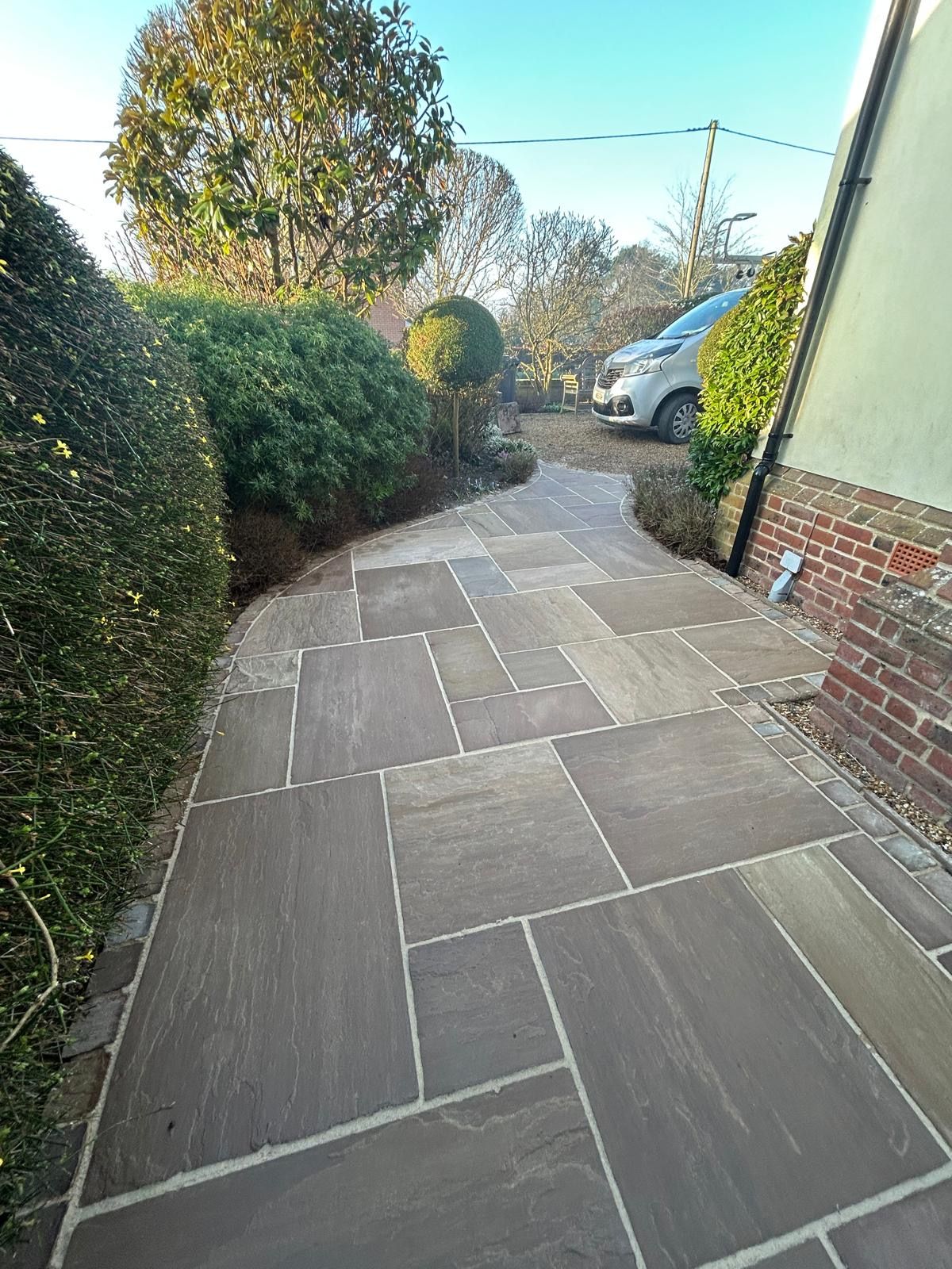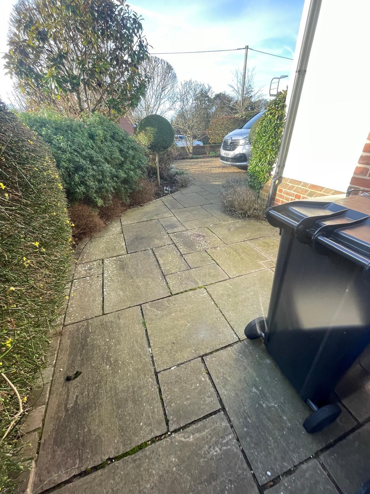 Our equipment includes a powerful Honda GX390 pressure washer delivering up to 21 litres per minute, combined with a hot box system. This allows us to use hot water and steam where required. Steam cleaning is especially effective on delicate surfaces such as natural stone and sandstone patios, as it delivers excellent results while reducing the need for aggressive pressure.